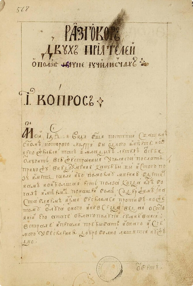 ...................В этом контексте интересна история цифирных школ, исходно задуманных Петром как внесословная система элементарного образования (взамен издавна существовавших приходских школ, о которых мы писали выше) с упором на математические дисциплины.
